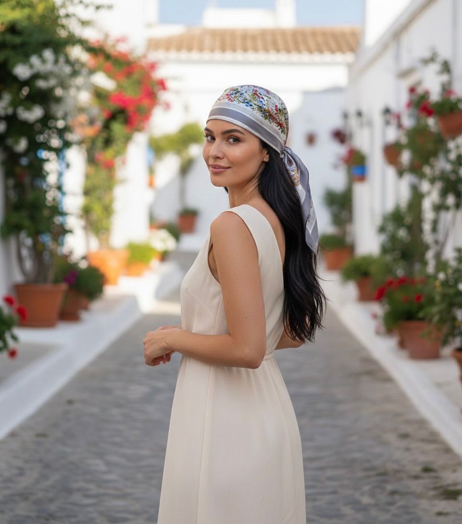 Pañoleta blanca rayas negras